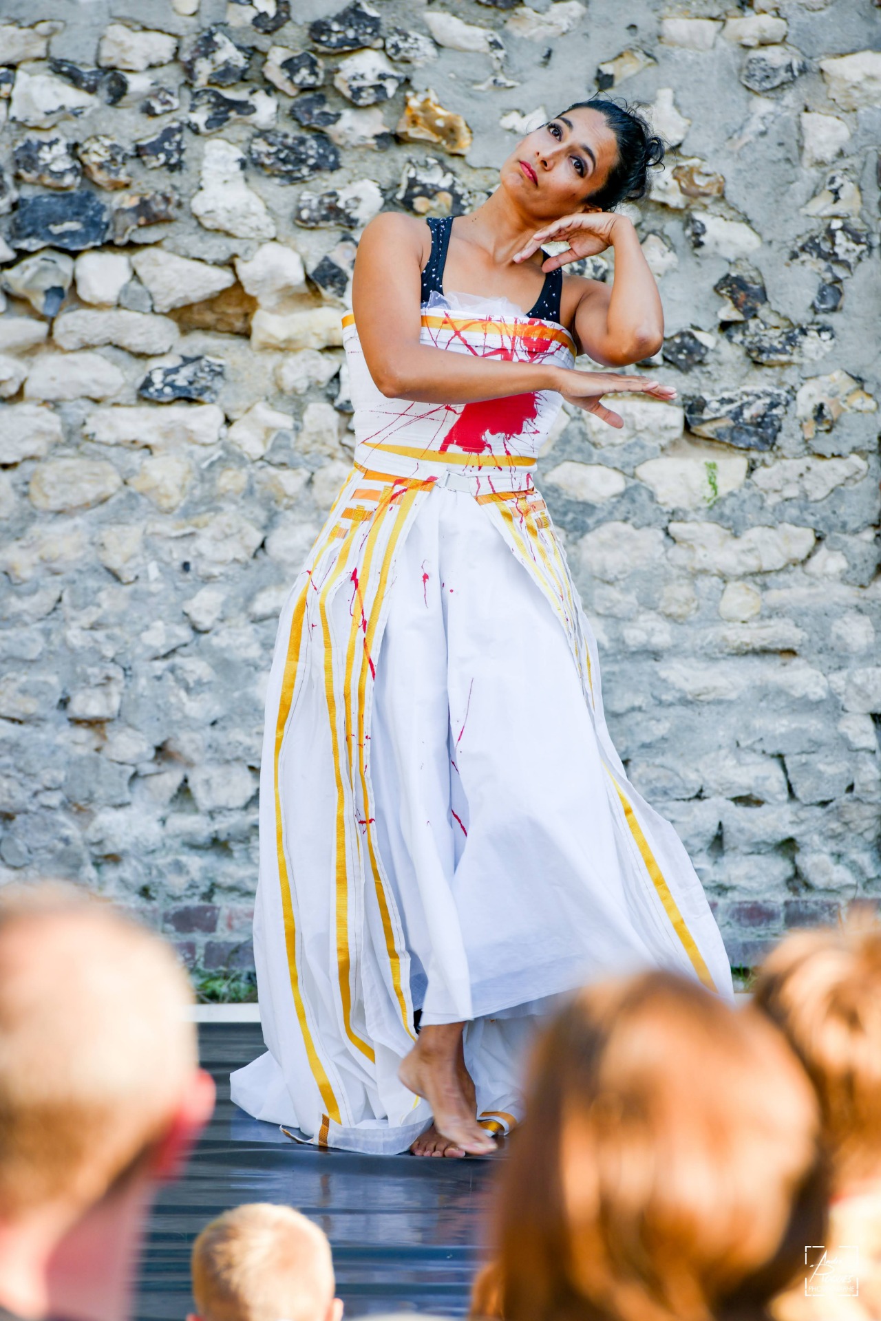 Ma terre est un solo de danse-clown de 25 mn dans 2 mètres carrés de terre destiné à un public familial, et tout particulièrement au très jeune public il est proposé à partir de 3 mois Uniquement guidée par les émotions des sens, cette clown touchante et espiègle à la fois arrive avec son paluchon rempli de terre, le dénoue au sol, et expérimente la danse au contact ie la terre, un des quatre éléments, essentiel et universel. Plaisir, jeu, étonnement et lâcher-prise seront du royage. Elle brave l'interdit et se retrouve peu à peu couverte de terre !